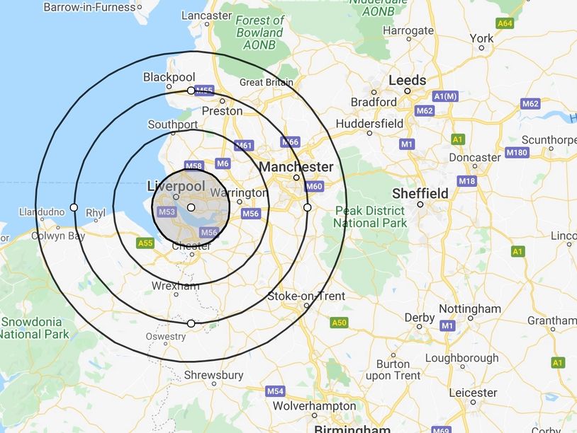 Travel charges are calculated from my home postcode using Maps (L18 9XP)